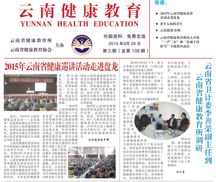发布日期:2015-04-02 00:00:00浏览次数:15058来源:云南省人口和卫生健康宣传教育中心作者:云南省人口和卫生健康宣传教育中心