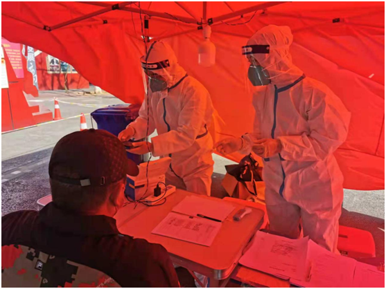 社区是疫情防控的第一道防线,当“307”疫情发生伊始,中心领导高度重视,3月11日下午即在中心疫情防控工作部署会上展开动员,吹响应急支援社区的“集结号”。中心6名在职党员立即响应,自愿报名成为防疫志愿者,就近配合社区开展疫情防控志愿服务。3月14日,中心召开全体职工疫情防控专题工作会议,中心主任段勇提出要结合“我为群众办实事”实践活动,联系党员“双报到双服务双报告”工作,建立社区核酸检测志愿者排班机制,将在职在岗党员分为两人一组,按班次轮流参与社区核酸检测工作,彰显了常态化驻守社区防控工作的队伍凝聚力。