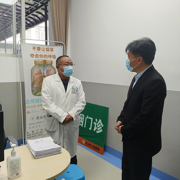 文山市人民医院于2018年被纳入***规范化建设戒烟门诊试点,多年来一直按照建设要求开展工作,目前,是文山州**一家***规范化建设戒烟门诊。现场指导过程中,吴智深对戒烟门诊开展的工作、取得的成效给予了充分肯定,对医院助力戒烟门诊发展提出了要求和建议。