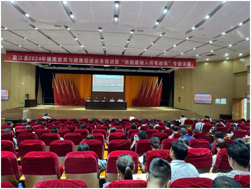 【德宏】省健康宣教中心近期对德宏州健康素养促进行动工作开展业务指导发表时间:2024-08-08 12:43 受德宏州疾控中心及盈江县卫生健康局邀请,省健康宣教中心健康促进科于2024年7月29日至8月1日分别对德宏州盈江县、芒市正在实施的健康素养促进行动子项目开展技术支持和业务指导。 盈江县为我省2023-2024年健康促进县区建设批次,为持续推进全县的健康教育与促进工作,7月30日上午,健康盈江行动办举办全县健康教育与健康促进业务培训班暨“将健康融入所有政策”专题讲座视频会议。县级各机关企事业各单位、各乡镇及农场社区分管卫健工作领导和卫健办工作人员、各村委会支书/主任、村卫生健康宣传员、县乡两级各医疗机构、县直中小学、乡镇中心校分管健康教育的领导和工作人员共400余人参加培训。省健康宣传教育中心健康促进科人员受邀到会授课。