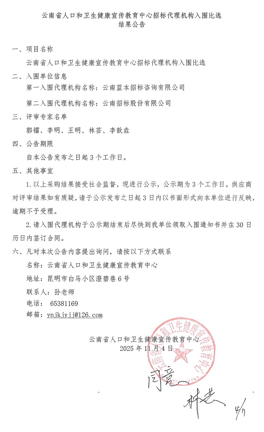 招标代理机构入围比选结果公示